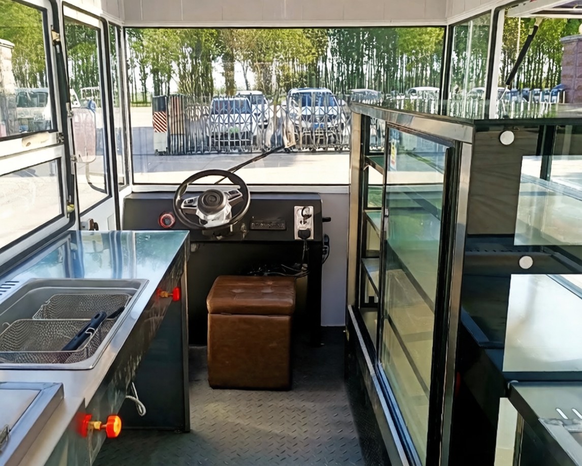 With a refrigerated display cabinet on one side and a sunshade umbrella