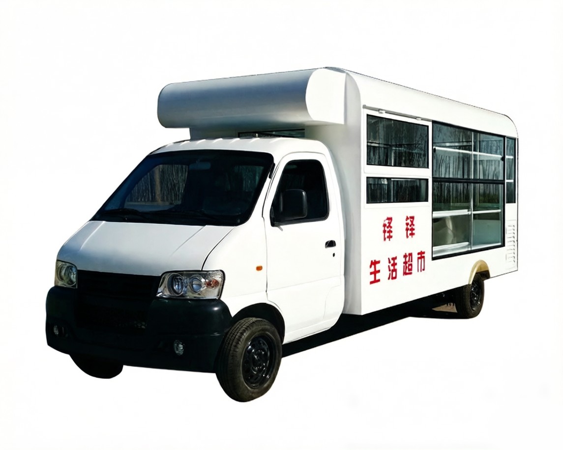 The vehicle body is equipped with a sliding display cabinet that can be extended to increase the internal space